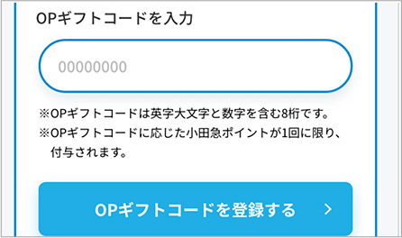 OPギフトコードを登録すると、現在のメインカードに小田急ポイントが付与されます。