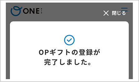 取得したOPギフトコードを入力し、「OPギフトを登録する」ボタンを押します。 ※QRコード読取等で既にギフトコードが入力されている場合はそのまま登録ボタンを押してください