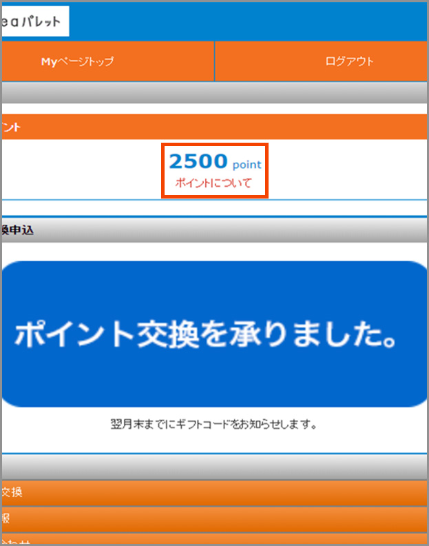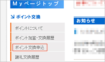 - Myページの「ポイント交換申込」