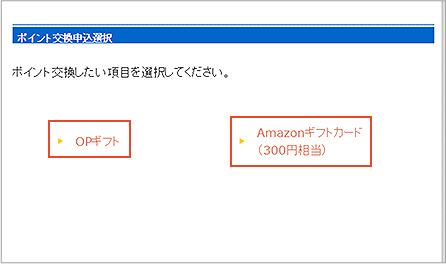 - アンケートポイント300ポイントがOPギフト300ポイントと交換できます。