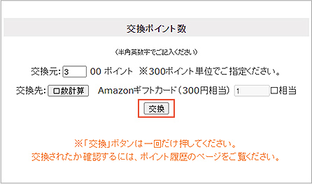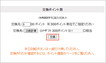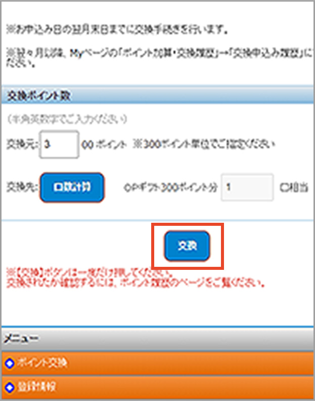 交換元ポイントをご確認いただき、「交換」ボタンを押してください。
