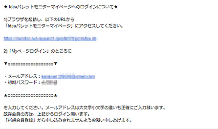 新システムへの移行にあたり、従来よりご登録いただいていたモニターの皆様に、当サイト用の「初期パスワード」を発行いたします。